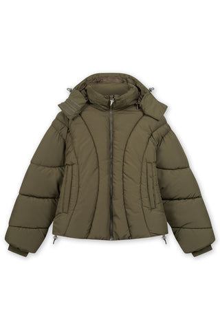 ABSTRACT OLIVE PUFFER JACKET