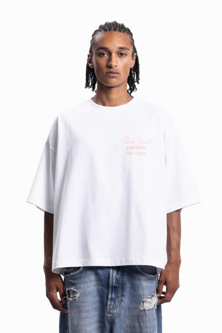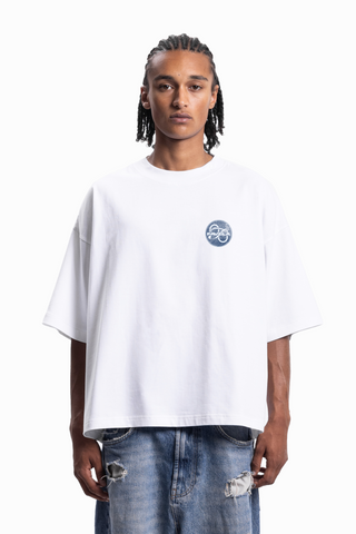 FAVELA SLICE BOXY DISTRESSED WHITE T-SHIRT