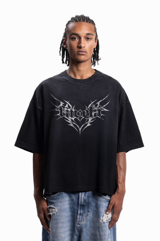 BLOOD CROWN BOXY DISTRESSED BLACK WASHED T-SHIRT