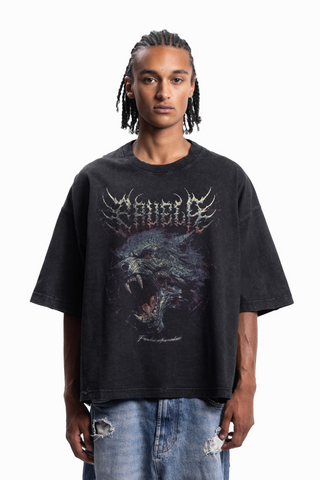 ROCK TRIBAL BOXY DISTRESSED BLACK WASHED T-SHIRT