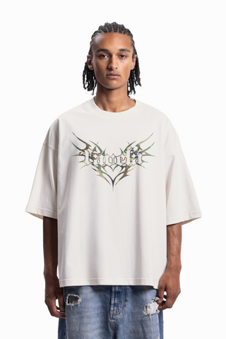 TRIBAL CAMO BOXY DISTRESSED VANILLA T-SHIRT