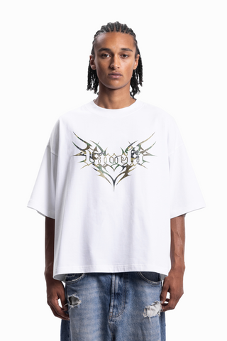 BASIC TRIBAL BOXY DISTRESSED WHITE T-SHIRT