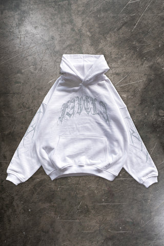 RIBCAGE RHINESTONE WHITE HOODIE