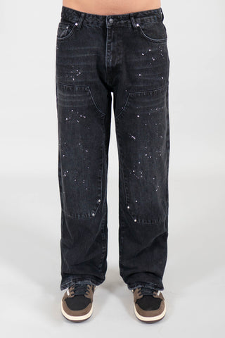 BLACK WASHED SPLATTERED PATCH DENIM