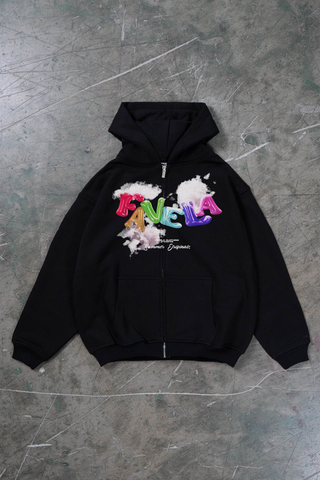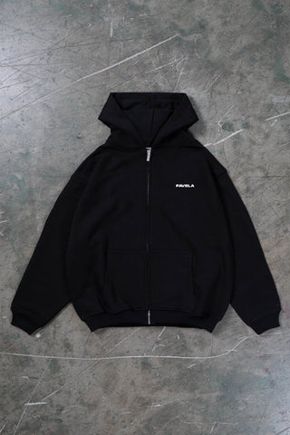 FAV TERRY BLACK BRUSHED FRONT ZIP