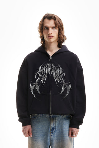 OLD ENGLISH BLACK WASHED FRONT ZIP