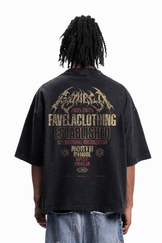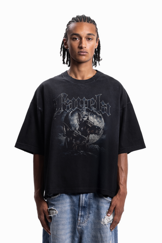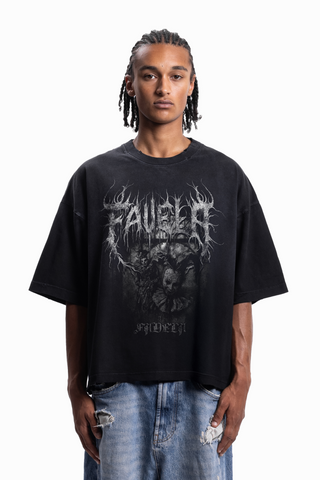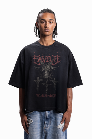 FAVELA WALL BOXY DISTRESSED BLACK WASHED T-SHIRT