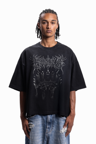 CULT BOXY DISTRESSED BLACK WASHED T-SHIRT