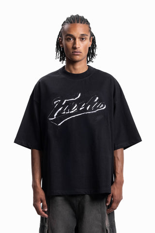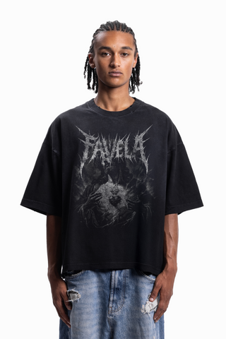 FAVELA SLICE BOXY DISTRESSED BLACK T-SHIRT