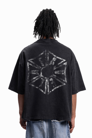 HEXAGON BOXY DISTRESSED BLACK WASHED T-SHIRT