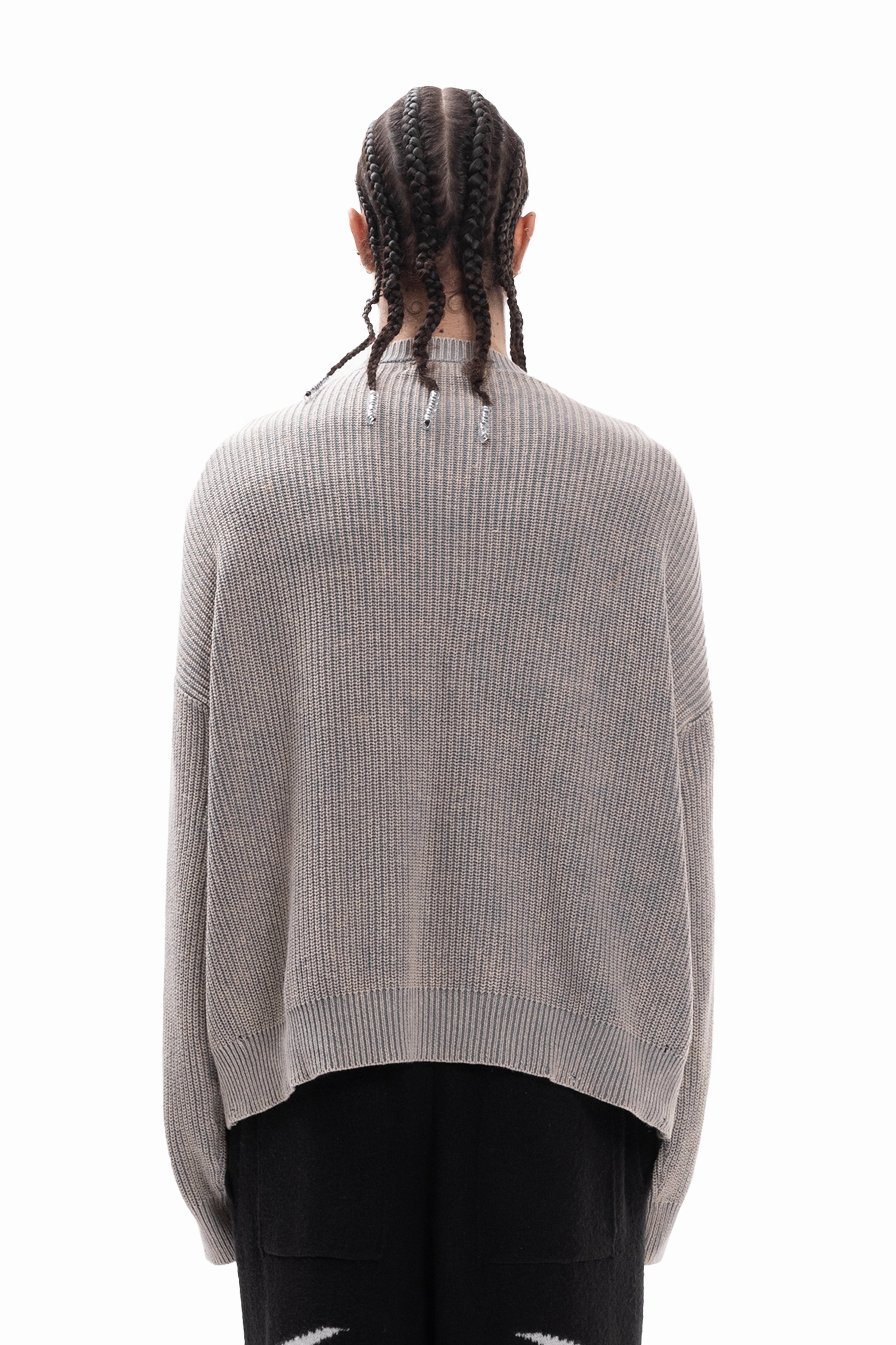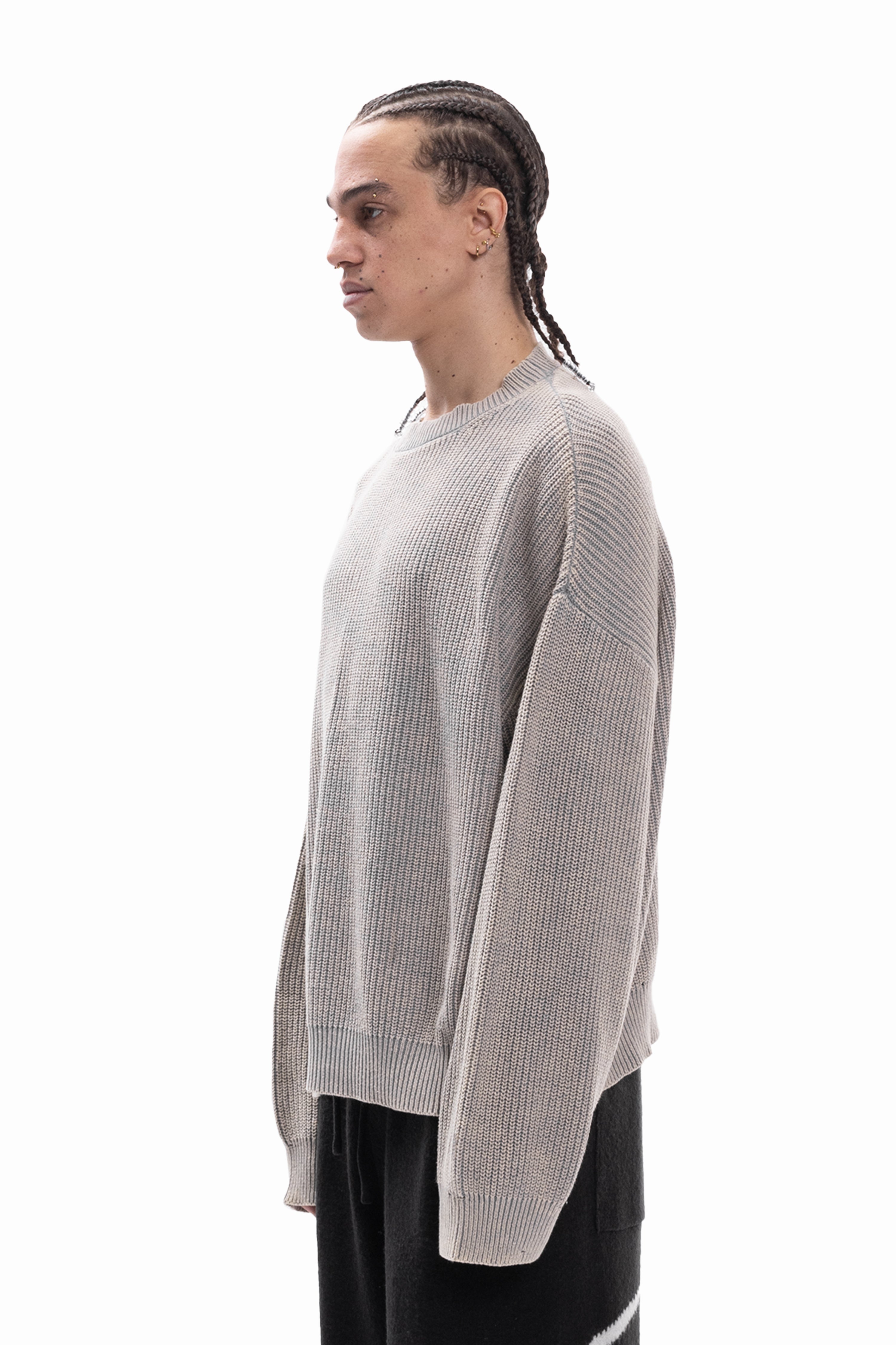 DISTRESSED KNIT GREY WASHED CREWNECK