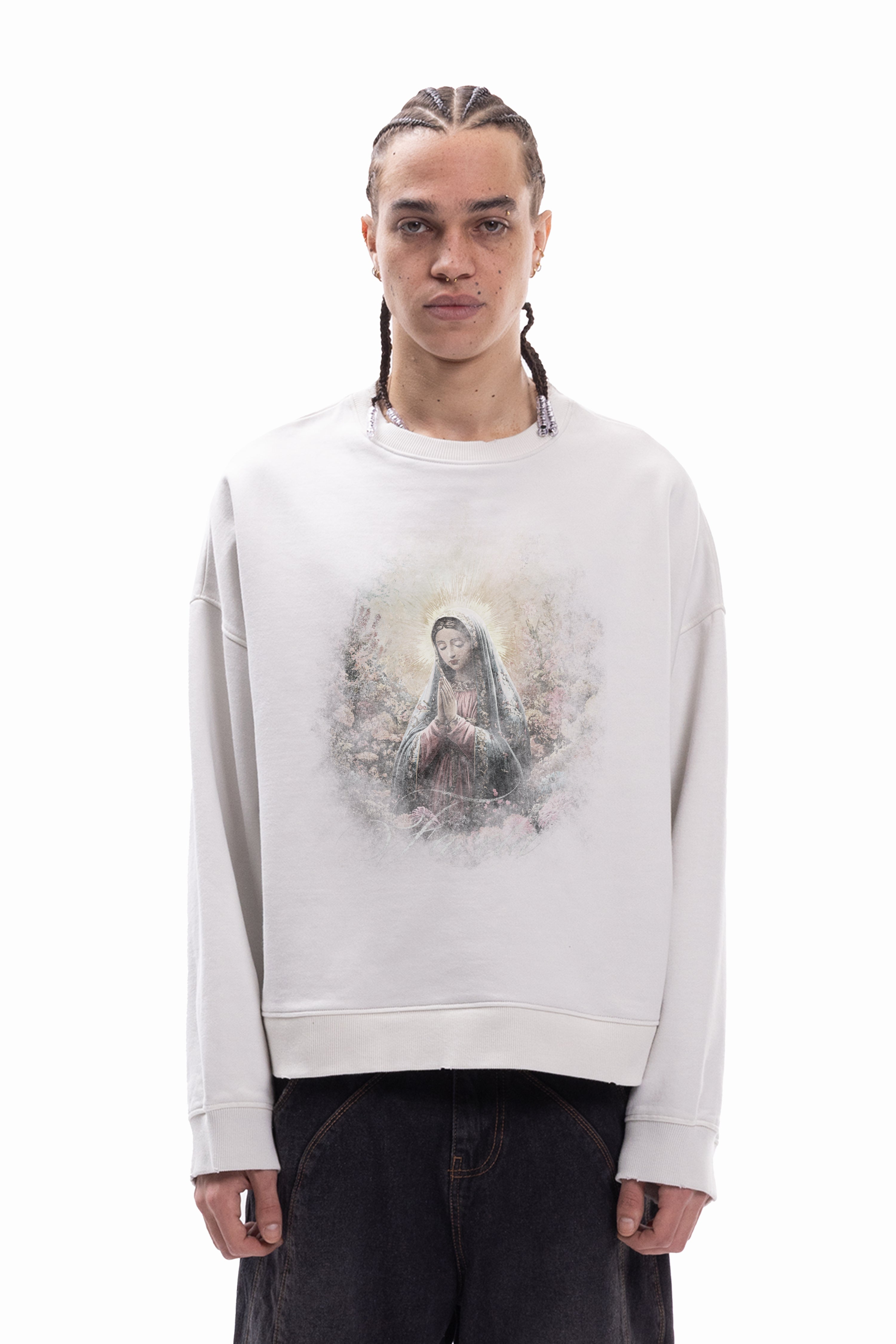 MARIA DISTRESSED VINTAGE WHITE BOXY CREWNECK