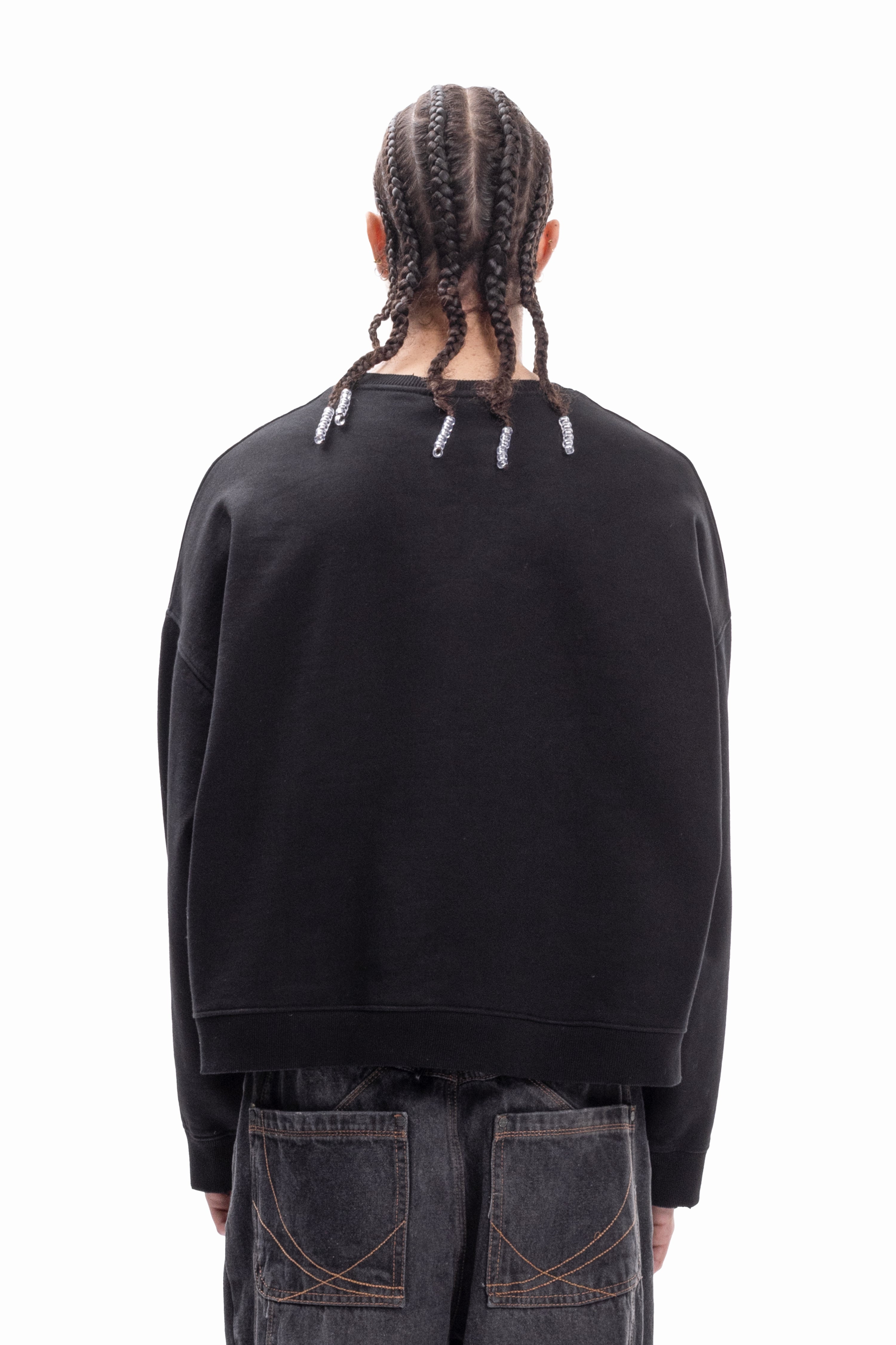 SORCERER DISTRESSED BLACK BOXY CREWNECK