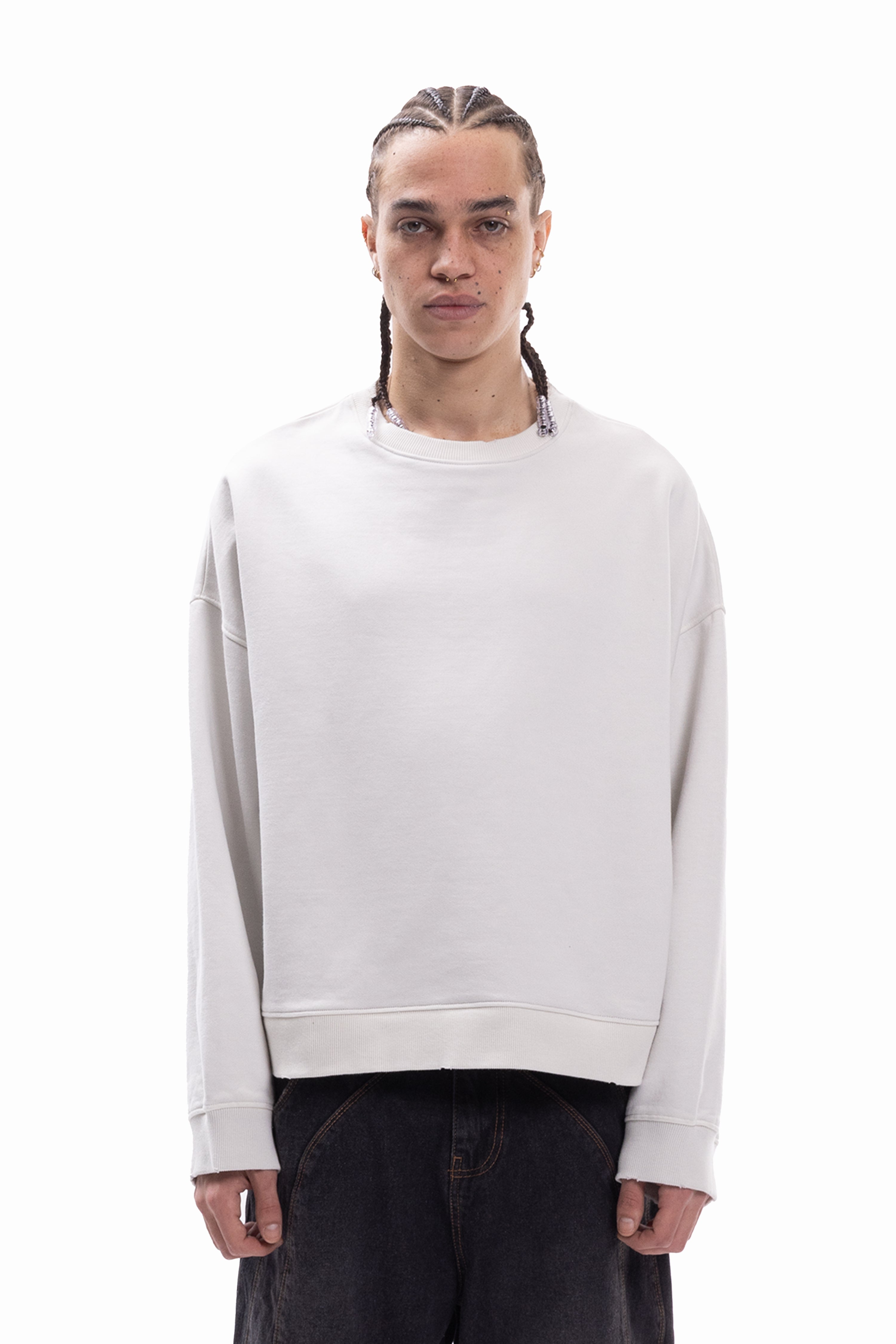DISTRESSED VINTAGE WHITE BOXY CREWNECK