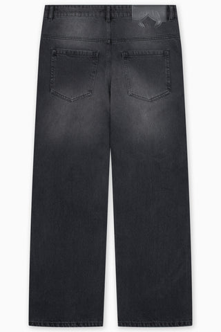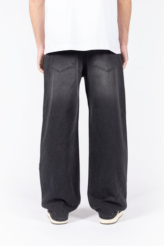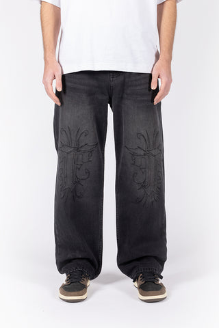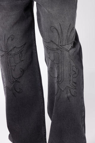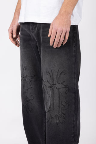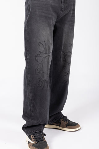 KNEE EMBROIDERY BLACK WASHED DENIM